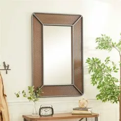 Grayson Lane 47.31-in L X 31.38-in W Industrial Rectangle Brown Framed Wall Mirror