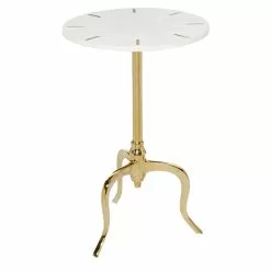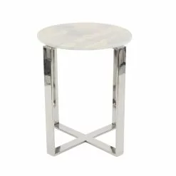 Grayson Lane White Granite/Marble And Mago Wood Round End Table
